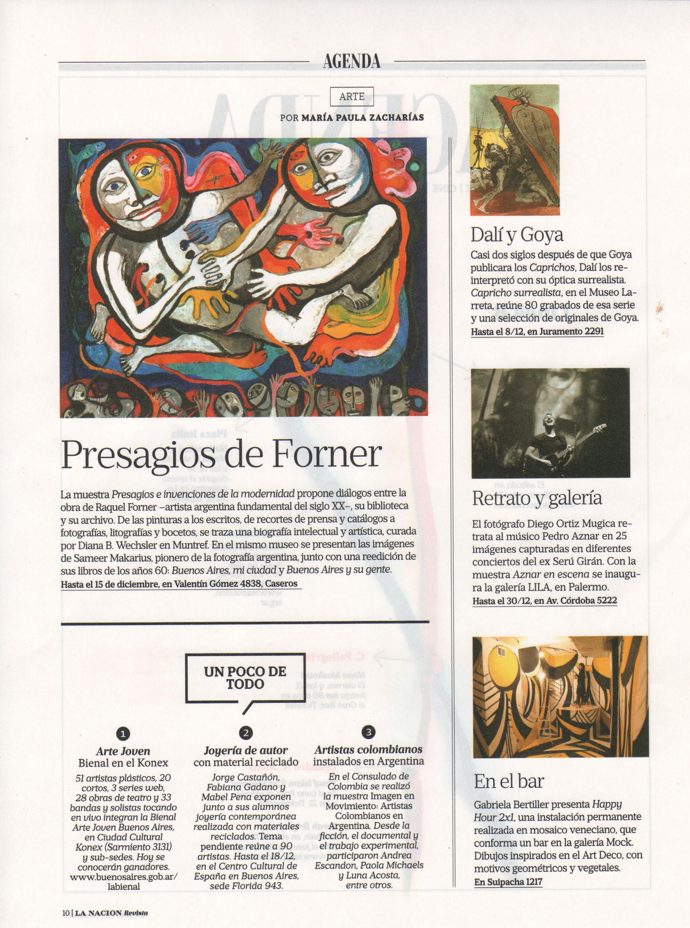 La muestra Presagios e invenciones de la modernidad propone diálogos entre la obra de Raquel Forner, artista fundamental del arte argentino del siglo XX, su biblioteca y su archivo. De las pinturas a sus escritos, de los recortes de prensa y catálogos a sus fotografías, litografías y bocetos, se traza una biografía intelectual y artística, curada por Diana B. Wechsler en MUNTERF. Pintora, escultora y profesora de dibujo, integró el movimiento Grupo Florida, y entre otros premios, ganó la medalla de oro en la Exposición Internacional de París en 1937. Su arte pasó del naturalismo a un expresionismo muy personal, por momentos cercana al surrealismo, entre la gestualidad y automatismo. En 50 pinturas, dibujos y grabados, Forner es testigo de la modernidad, retrata los males del mundo e imagina utopías liberadoras en el espacio, entre astroseres y alienígenas. En el mismo museo se presentan las fotografías de Sameer Makarius, pionero de la fotografía argentina, junto con una reedición de sus libros de los años ‘60: Buenos Aires, mi ciudad y Buenos Aires y su gente.