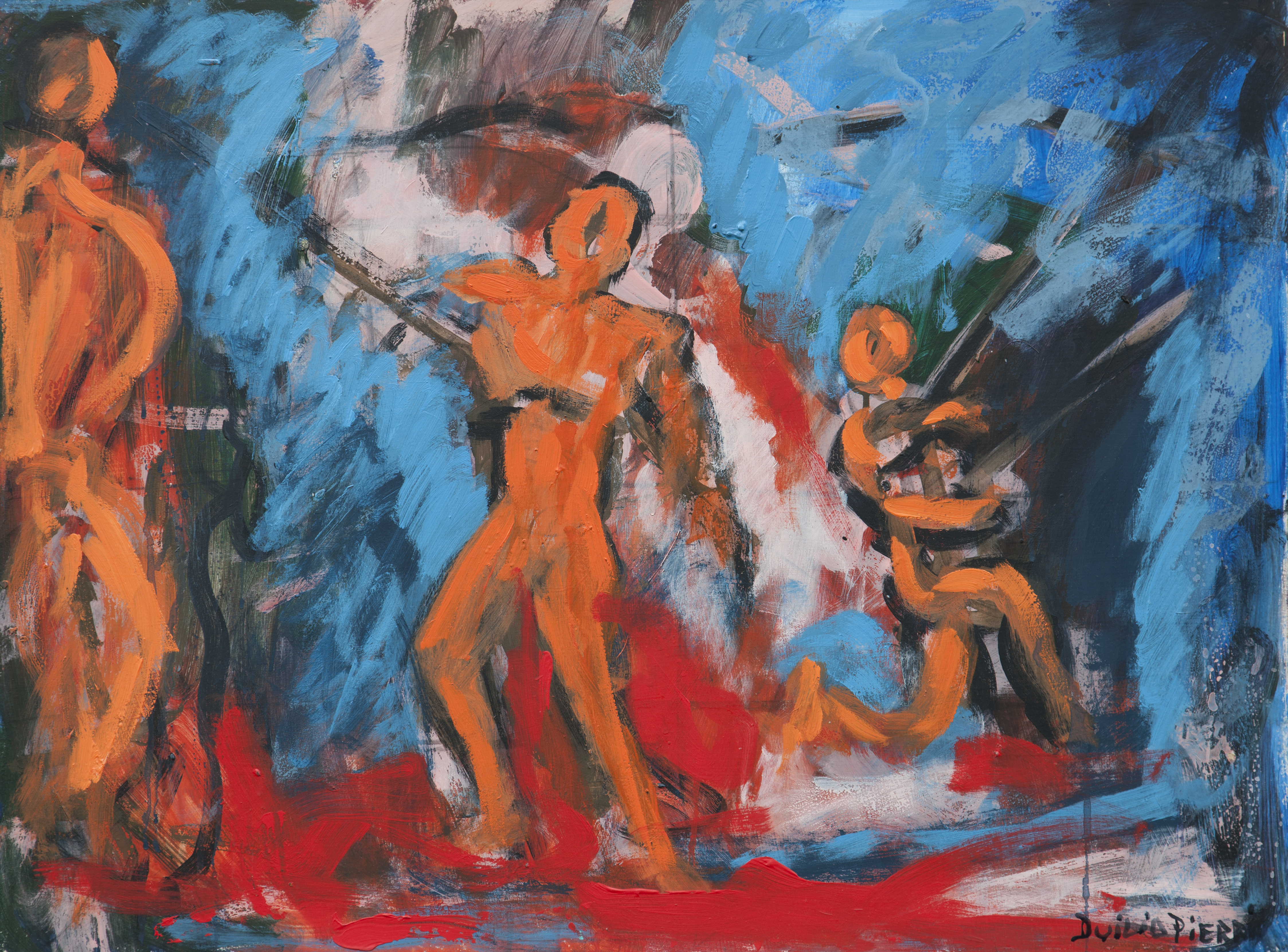 Influido por su abuelo astrólogo y pintor, Duilio Pierri viaja por el continente, interesado en la cultura americana. La muestra La llegada, en Azur, tiene que ver con Juan Kalfucura y la Campaña del Desierto. “Reconocer el genocidio, en lugar de justificarlo, es fundamental y es también la manera de reparar y asumir nuestra verdadera historia”, dice.