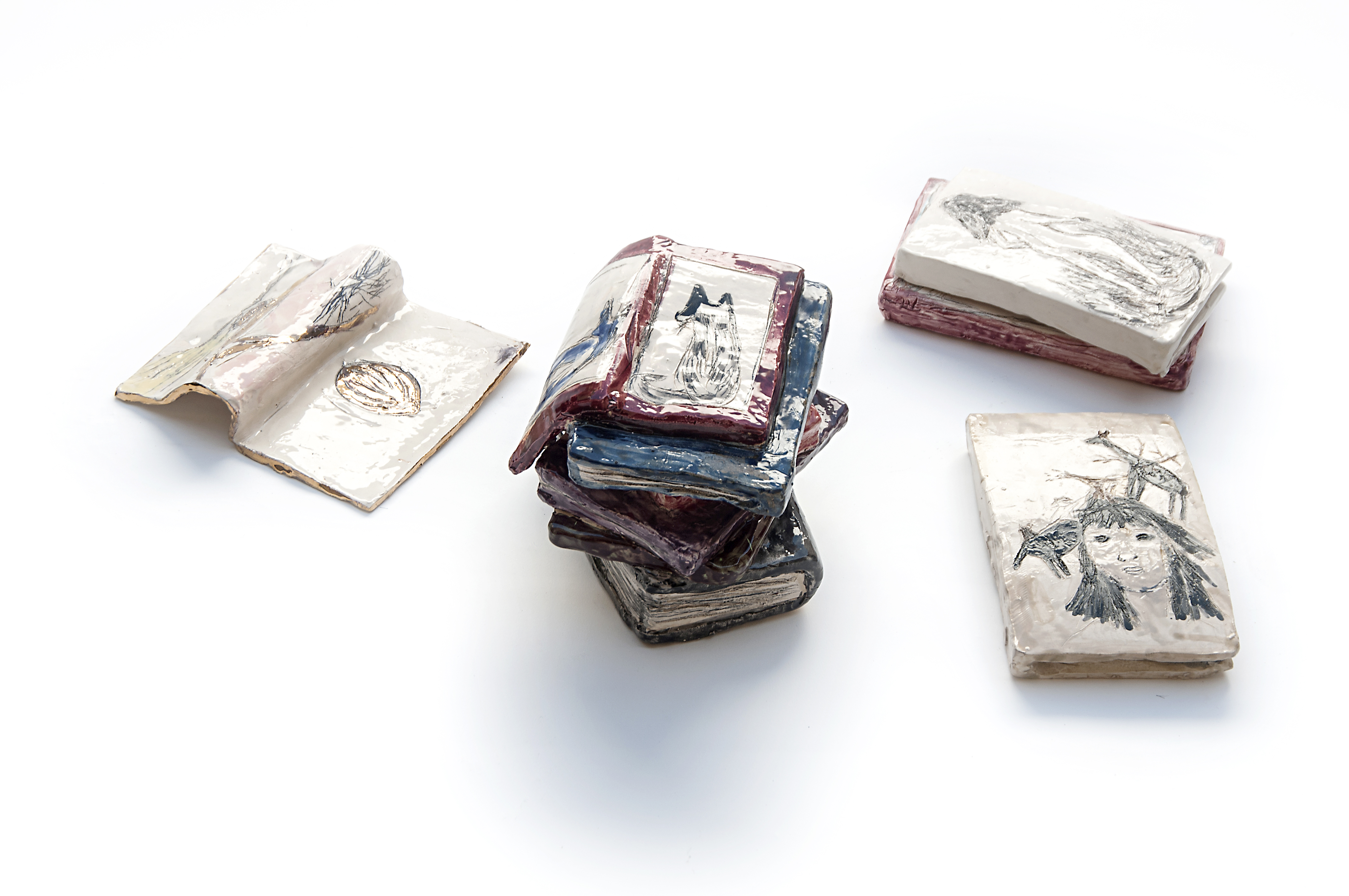 Débora Pierpaoli cuenta historias en sus libros de bronce y cerámica, objetos, pinturas e instalaciones, exhibidas en Si existiera, en el Mamba. Tratamiento pictórico en máscaras, animales y figuras humanas con leyes propias. “Secuencias, libros que leí o imaginé, procesos mentales, un homenaje a Ana Mendieta, y siempre algo personal”, dice la artista.