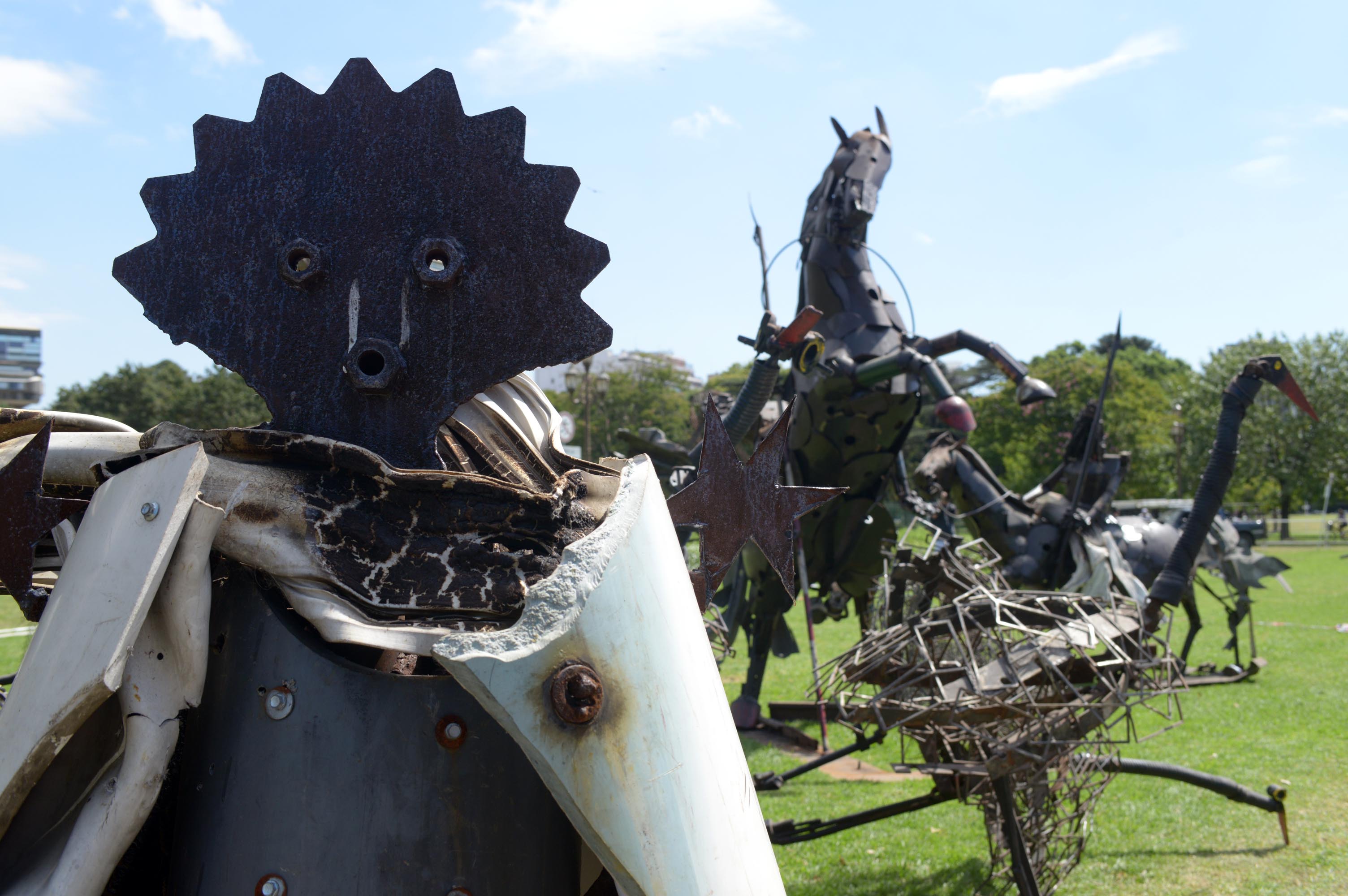 En la Plaza Rubén Darío (Austria entre avenida Figueroa Alcorta y avenida Del Libertador), florecen criaturas de metal forjadas por Carlos Regazzoni. En el Paseo de las Esculturas se instalaron 45 obras, de tres series: La flota de aviones, El malón y Rancho de los esteros.