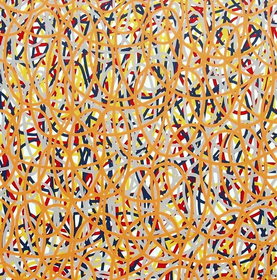 Alberto Méndez, Jorge Sarsale y Alejandro Thornton (en esta imagen) integran la exposición Lecturas abstractas, en Central Newbery. Formas, signos y símbolos desnaturalizados, que no se pueden leer. O maneras de escribir el universo de los autores.