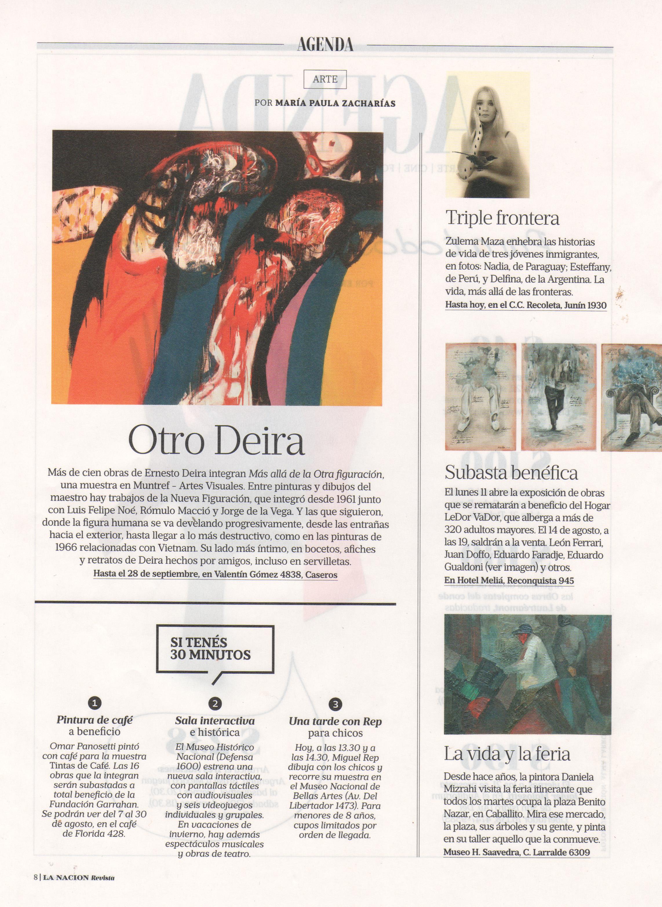 Hay un Deira más allá de la Otra figuración. Eso dicen los curadores de la muestra de más de cien obras en MUNTREF Museo de Artes Visuales, entre pinturas y dibujos del maestro. Están las obras de la Nueva Figuración, que integró desde 1961 junto con Luis Felipe Noé, Rómulo Macció y Jorge de la Vega. Y las que siguieron, donde la figura humana se va develando progresivamente, desde las entrañas hacia el exterior, hasta llegar a lo más destructivo, como en las pinturas de 1966, relacionadas con Vietnam. Los dibujos ofrecen nuevas lecturas de su obra y un espacio presenta su costado más íntimo, con bocetos, afiches, trabajos que muestran su modo de producción y retratos de Deira hechos por amigos, incluso en servilletas.