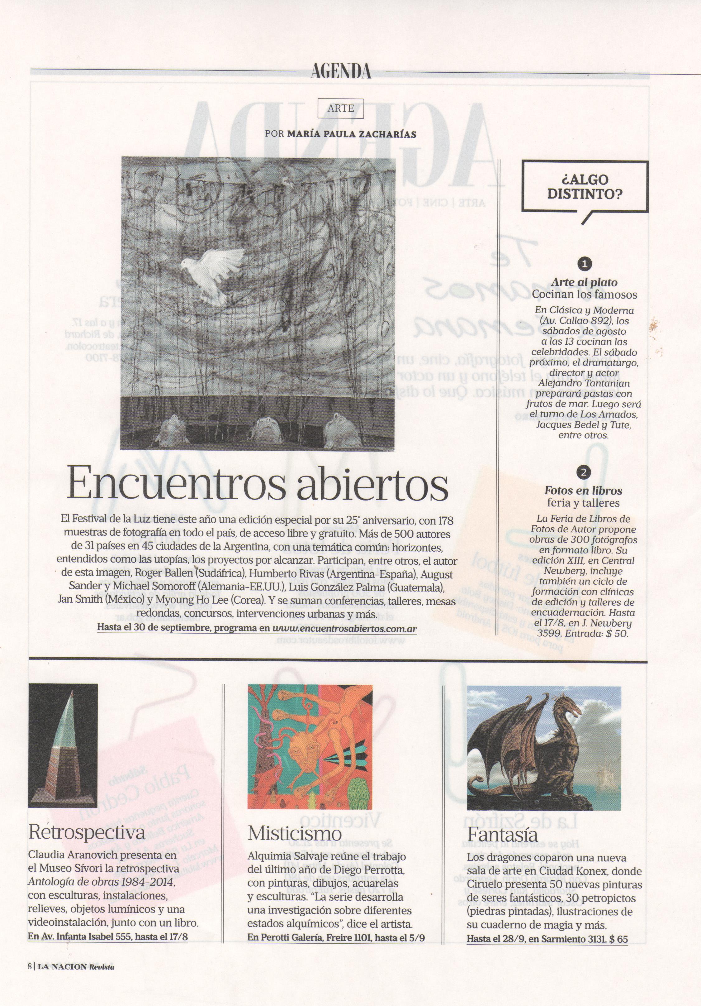 El Festival de la Luz tiene este año una edición especial por su 25 aniversario, con 178 muestras de fotografía en todo el país, de acceso libre y gratuito. Más de 500 autores provenientes de 31 países en 45 ciudades de Argentina, con una temática común: Horizontes, entendidos como las utopías, los proyectos por alcanzar. Entre los autores internacionales figuran el autor de esta imagen, Roger Ballen (Sudáfrica) y Humberto Rivas (Argentina-España), August Sander y Michael Somoroff (Alemania-EEUU), Luis González Palma (Guatemala), Jan Smith (México) y Myoung Ho Lee (Corea). Y se suman conferencias, talleres, mesas redondas, concursos, intervenciones urbanas, jornadas de proyecciones, presentaciones de libros y foros de portfolios.