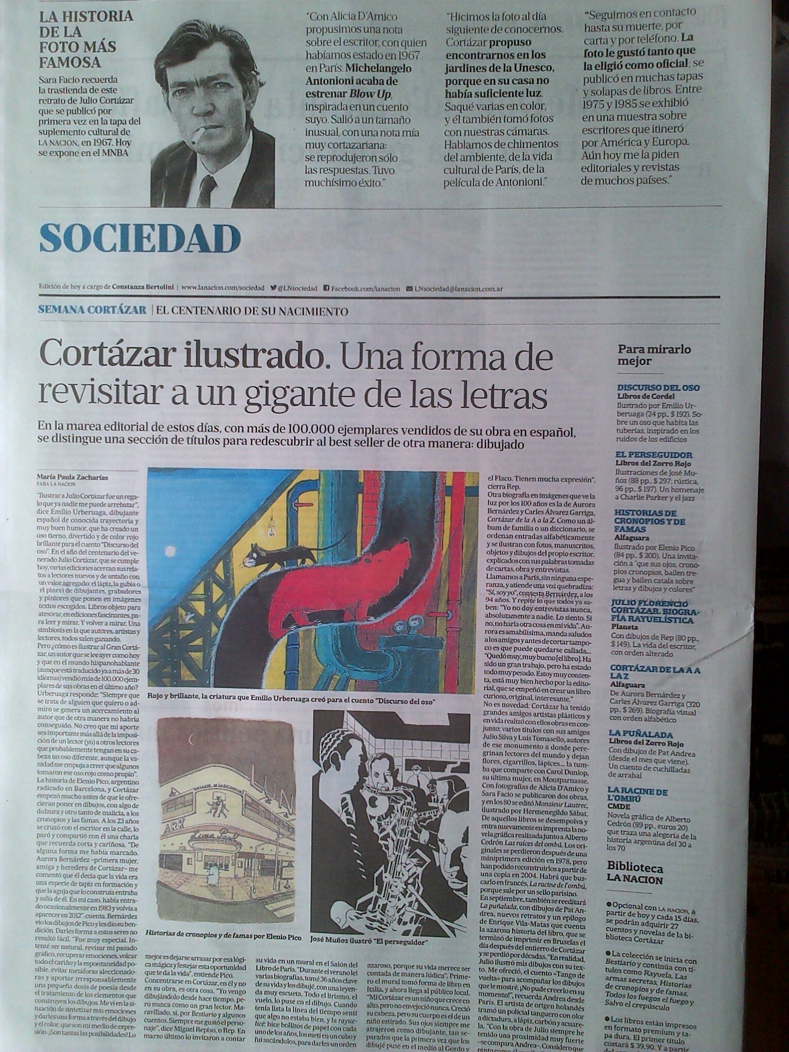 TXT: María Paula Zacharías. Sociedad / Martes 26 de agosto de 2014 | Publicado en edición impresa de La Nación (y en tapa). Link: http://www.lanacion.com.ar/1721752-cortazar-ilustrado-una-forma-de-revisitar-a-un-gigante-de-las-letras