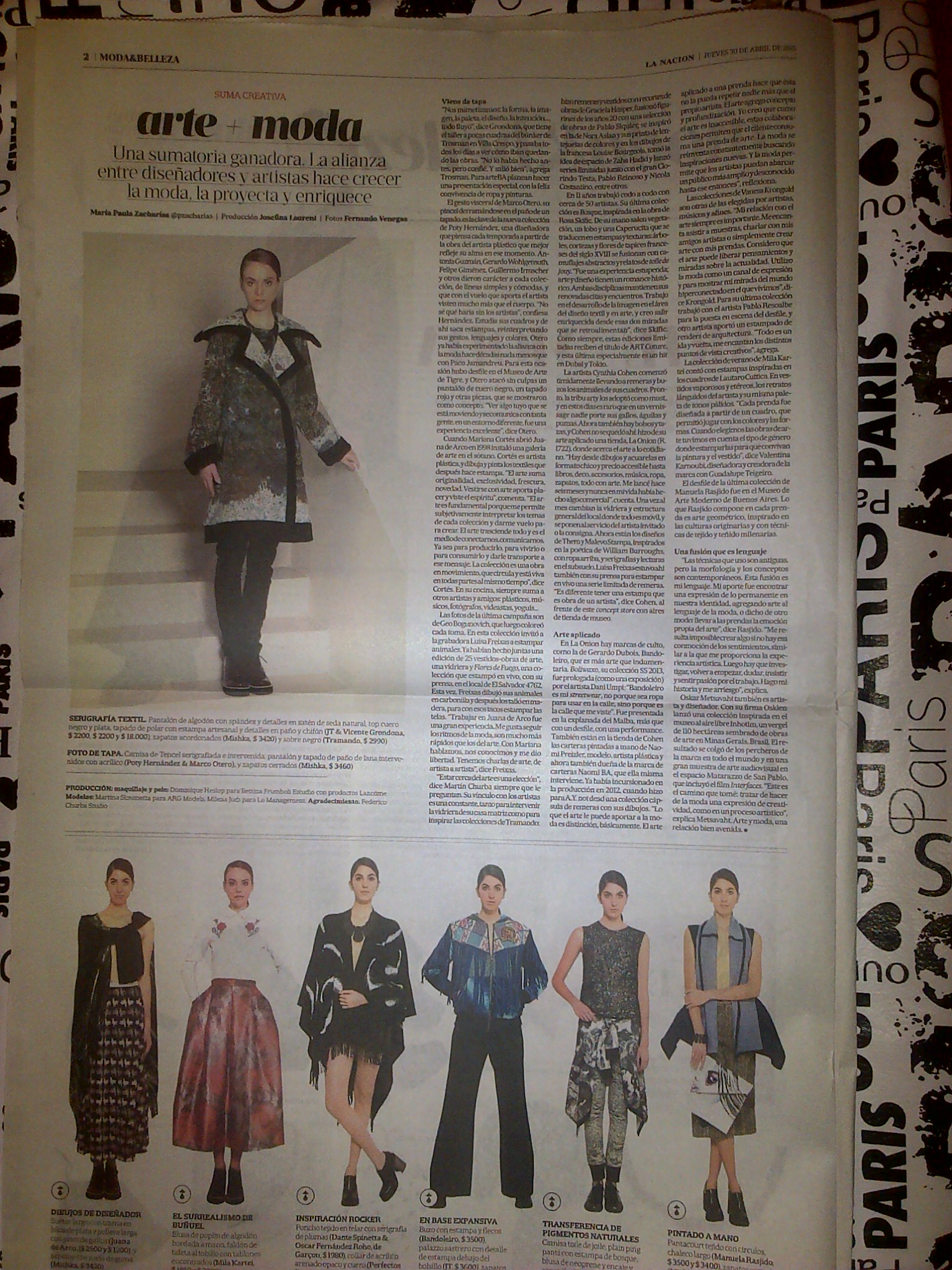 El gesto visceral de Marco Otero, su pincel derramándose en el paño de un tapado, es la clave de la nueva colección de Poty Hernández, una diseñadora que piensa cada temporada a partir de la obra del artista plástico que mejor refleje su alma en ese momento. Antonia Guzmán, Gerardo Wohlgemuth, Felipe Giménez, Guillermo Irmscher y otros dieron carácter a cada colección, de líneas simples y cómodas, y que con el vuelo que aporta el artista visten mucho más que el cuerpo. «No sé qué haría sin los artistas», confiesa Hernández. Estudia sus cuadros y de ahí saca estampas, reinterpretando sus gestos, lenguajes y colores. Otero ya había experimentado la alianza con la moda hace décadas nada menos que con Paco Jamandreu. Para esta ocasión hubo desfile en el Museo de Arte de Tigre, y Otero atacó sin culpas un pantalón de cuero negro, un tapado rojo y otras piezas, que se mostraron como concepto. «Ver algo tuyo que se está moviendo y se comunica con tanta gente, en un entorno diferente, fue una experiencia excelente», dice Otero.