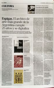 Publicado en La Nación, Cultura, 9/5/17. Link: http://www.lanacion.com.ar/2021875-espigas-el-archivo-de-arte-mas-grande-de-la-argentina-cumple-25-anos-y-se-digitaliza