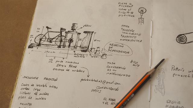 Andrés Aizicovich (Buenos Aires, 1985) es el creador de Relación de dependencia, la obra ganadora de la última edición del Premio Braque, exhibida hasta hace unos días en la sede Hotel de Inmigrantes del Muntref. Una instalación y a la vez acción performática realizada en colaboración con la ceramista Cecilia Ojeda: juntos hacen andar la bicicleta que activa un torno de alfarero.