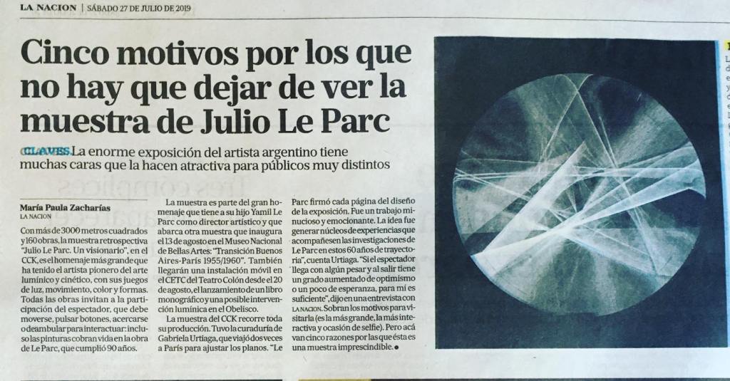 Con más de 3000 metros cuadrados y 160 obras, la muestra retrospectiva Julio Le Parc. Un Visionario, en el CCK, es el homenaje más grande que ha tenido el artista pionero del arte lumínico y cinético, con sus juegos de luz, movimiento, color y formas. Todas las obras invitan a la participación del espectador, que debe moverse, pulsar botones, acercarse o deambular para interactuar con las piezas: incluso las pinturas cobran vida en la luminosa obra de Le Parc, que cumplió 90 años.