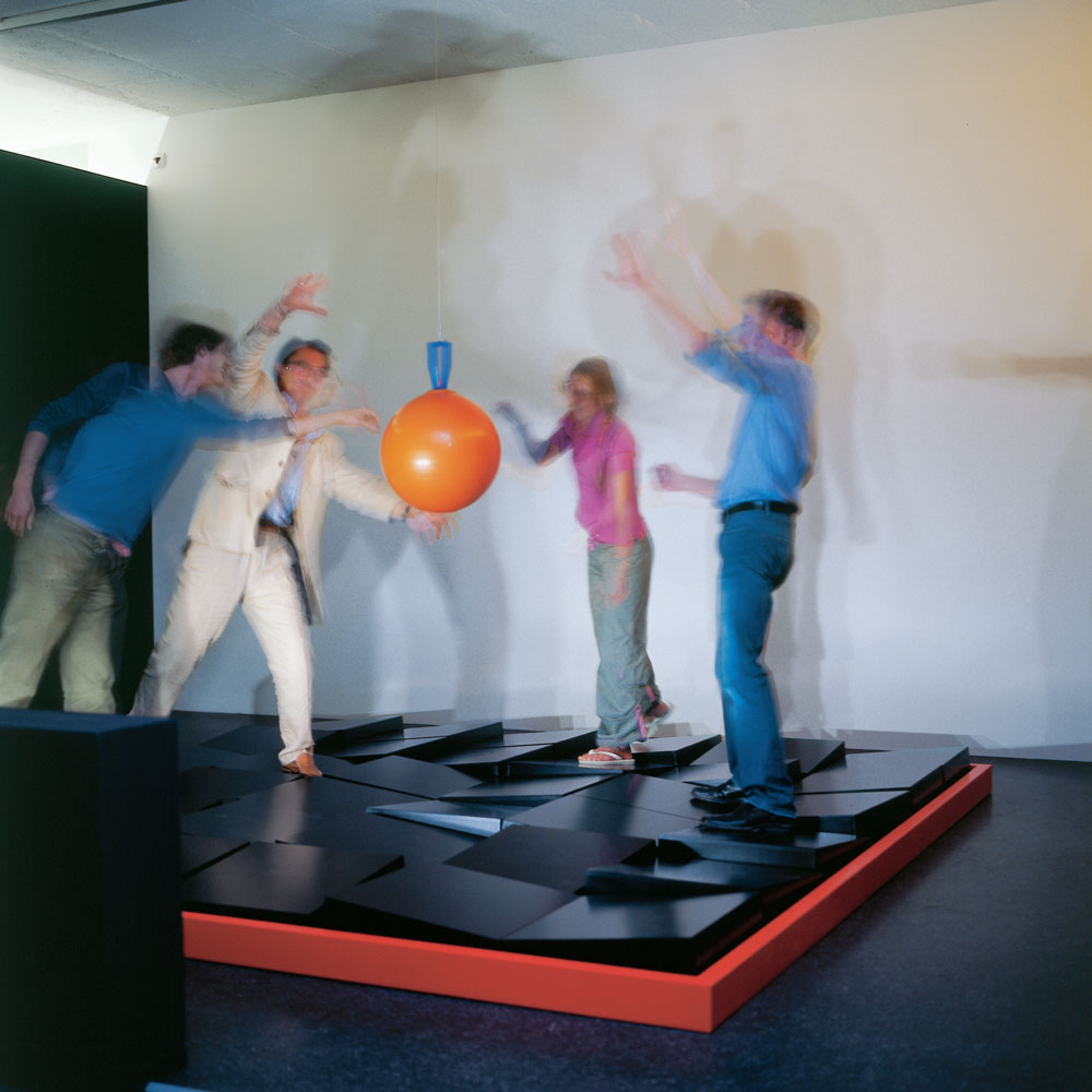 Juego. Para tocar, hacer, probar, accionar. Juegos aptos para todo público se despliegan en la terraza del lomo de la Ballena. Anteojos para una visión diferente, espejos que devuelven imágenes distorsionadas, encuestas, tiro al blanco y bolsas de boxeo para arremeter contra figuras de poder, un piso inestable y botones para accionar mecanismos inesperados. Le Parc viene haciendo salas de juego desde sus comienzos, con el Grupo de Investigación de Arte Visual, y son clave en su obra: complicidad, humor y un poco de crítica.