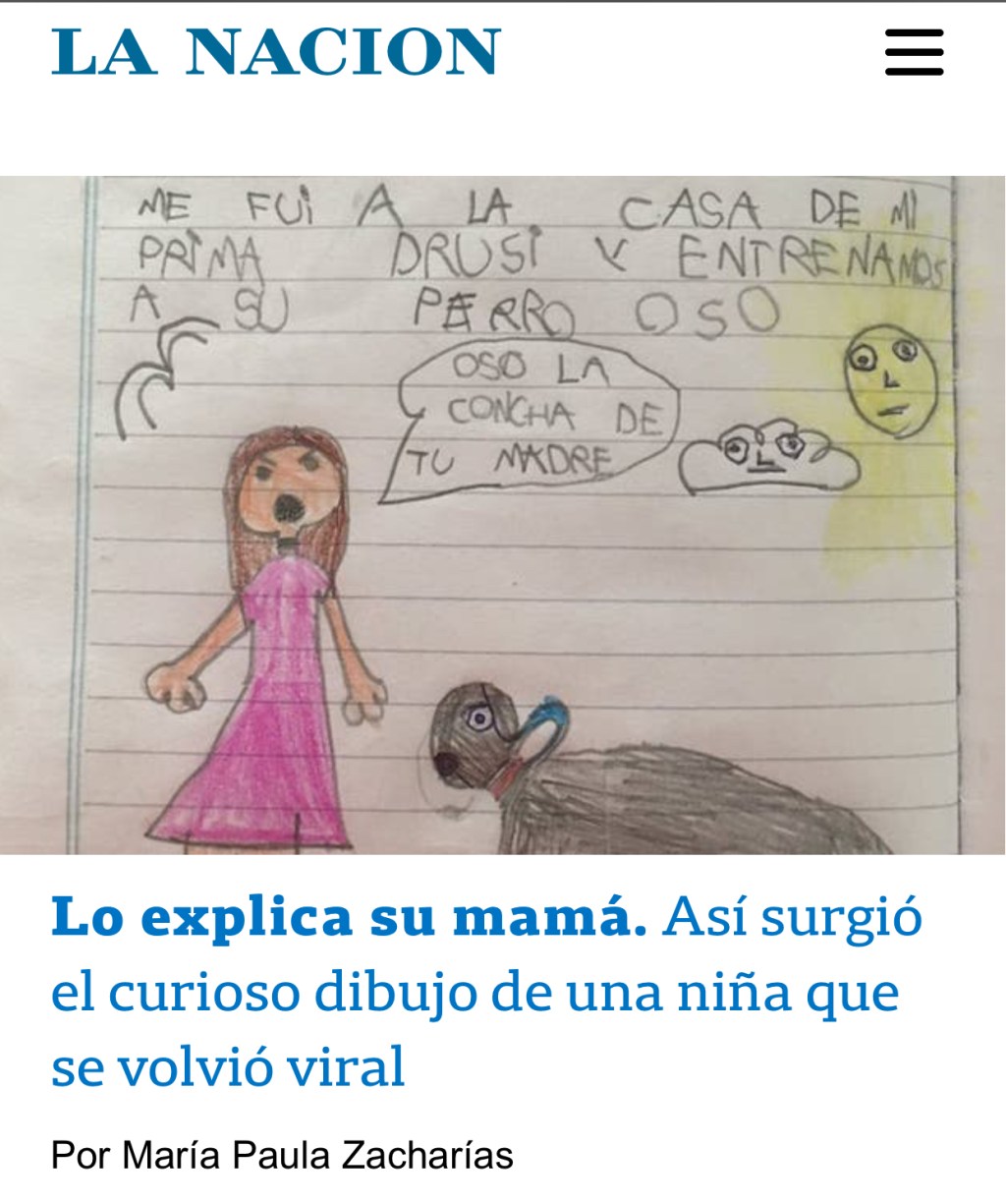 Por SANTIAGO PUDDINGTON. Clarín, 18/9/19. Link: https://www.clarin.com/viste/dibujo-nena-anos-desopilante-exabrupto-viral_0_y9p8K0Fj.html