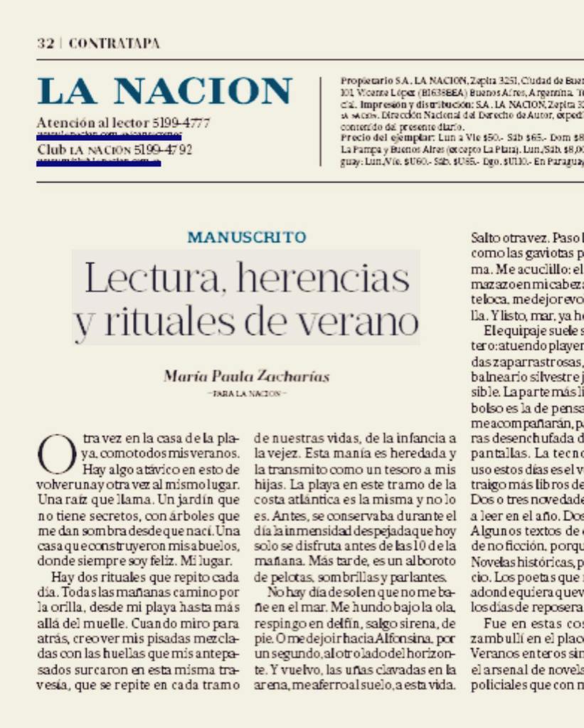 Manuscrito, publicado en La Nación, 20-1-2020.Link: https://www.lanacion.com.ar/opinion/miradas/lectura-herencias-y-rituales-de-verano-nid2325491