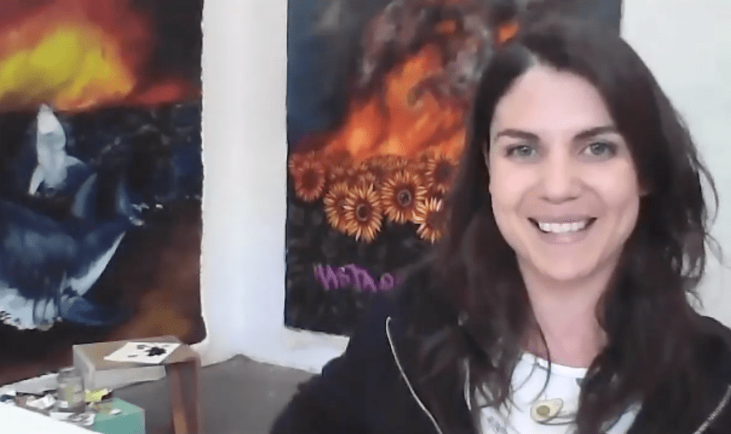 En plena pandemia, Jazmín Giordano es una de las primeras artistas que cursan una residencia artística. Aislada dentro del aislamiento general, su obra gana terreno y se expande en pinturas incendiarias, con animales salvajes, flores desbocadas, colores brillantes… Como siempre, en su obra actual y en la pasada en posible volver una y otra vez a mirarnos. La visitamos en Proyecto Urra, que recibe creadores para vivir y trabajar en sus instalaciones de Tigre, y vemos su taller y el de sus compañeros, Lucas Despósito y Franco Basualdo.