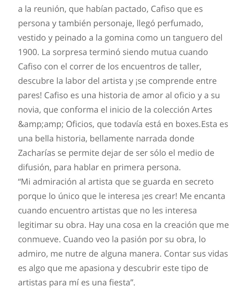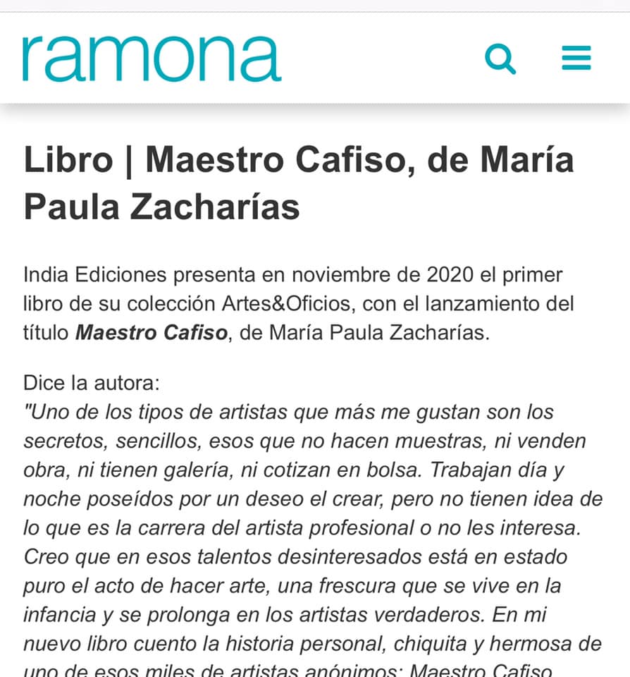 Hermoso texto de Cecilia Medina sobre mi libro #MaestroCafiso y el recuerdo que su lectura le trajo de su abuelo carpintero Ramón Pastoriza. Muy tierna historia y agudas reflexiones sobre el mercado del arte! Se lee acá: http://www.ramona.org.ar/node/70631