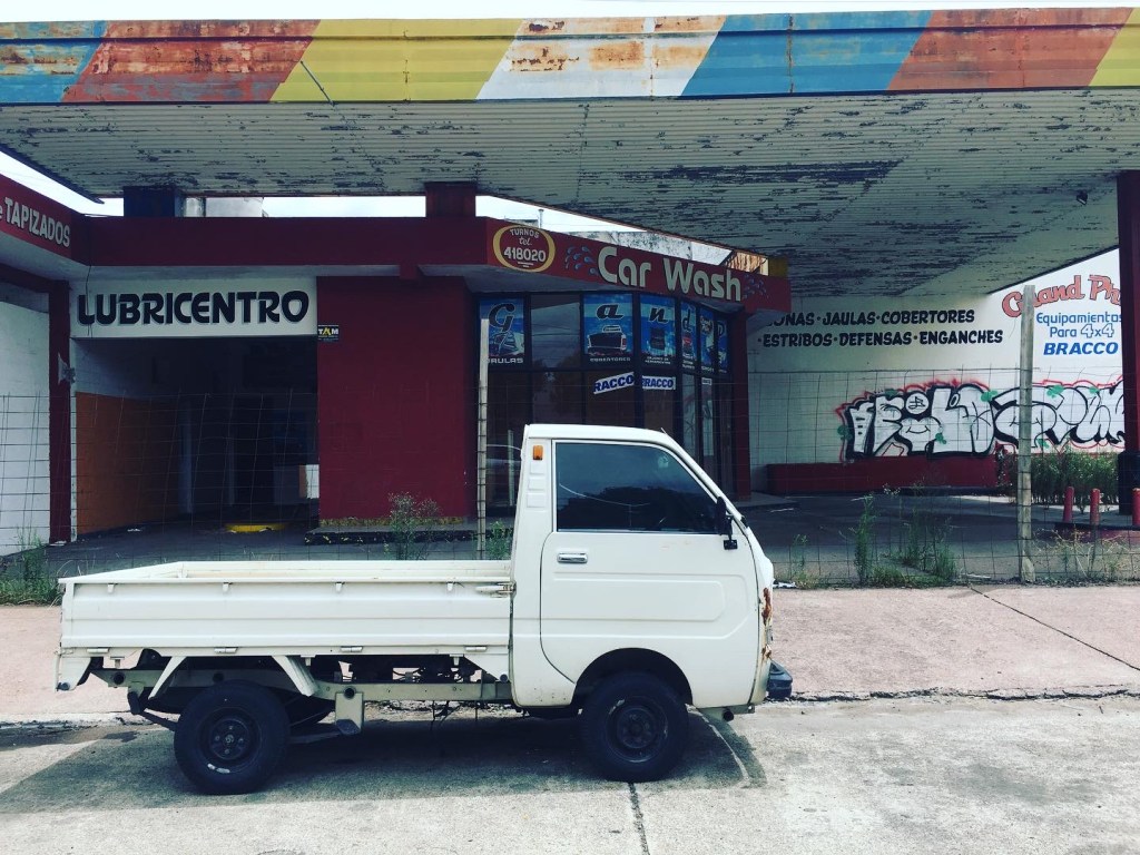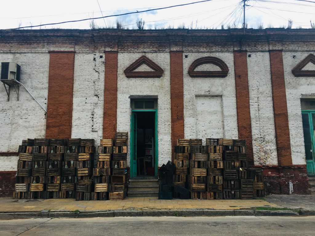 La arquitectura de antaño se conserva en las viejas casonas de estilo con doble altura, molduras y rejas soberbias, amaneradas, puertas de ebanista con ventiluz. Casas chorizo con todas las de la ley. También en los ladrillos a la vista de negocios levantados con grandilocuencia: una panadería ocupa un cuarto de manzana, un taller de autos brutalista se anuncia con un cartel de bajorrelieve en el cemento del frontis, en una coqueta esquina aún se lee «ramos generales». Son locales enormes, que suelen parecer semivacíos de tan grandes, y supongo que guardan relación con las calles doble ancho que caracterizan a esta ciudad, que no es otra que la Capital Nacional del Cemento, y de ahí el despilfarro en pavimentos. Antes, nadie ahorraba en la calidad y el volumen de las construcciones.