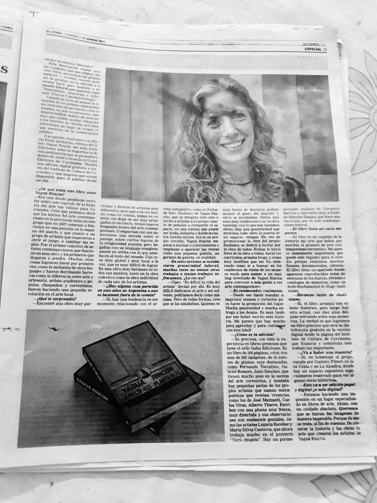 «Libro y muestra sobre Yaguá Rincón en ArteCo 2023», El Litoral, 21 de abril de 2023, @ellitoral https://www.ellitoral.com.ar/…/2023-4-21-7-26-0-libro-y…